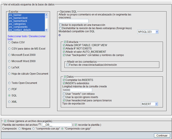 Sólo queda decidir que "Continúe" con la operación y ya podemos descargar el archivo en nuestro equipo. Tendrá un nombre del tipo "joomla.sql", "joomla.sql.zip" o "joomla.sql.gz", si la base de datos que estamos exportando se llamaba "joomla", claro.