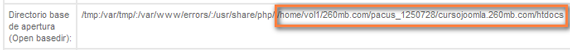 Podemos conocer esta referencia absoluta localizando la información del "Directorio base de apertura" (Open basedir) desde la información que nos proporciona Joomla! sobre la configuración de PHP: