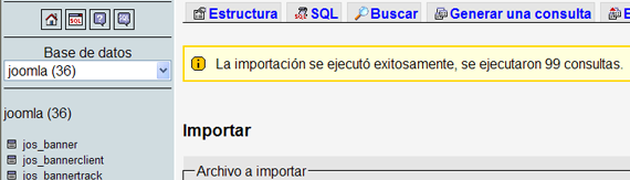 5. Y ya hemos realizado la importación de la base de datos.
