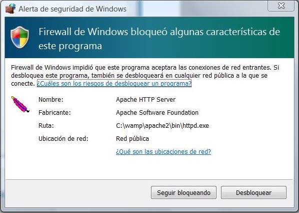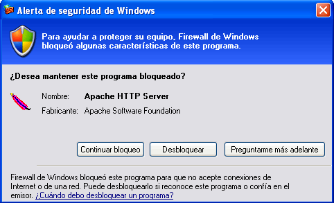 10 Podemos encontrar un mensaje del sistema operativo. Desbloqueamos el servidor Apache para que pueda ser ejecutado en Windows.