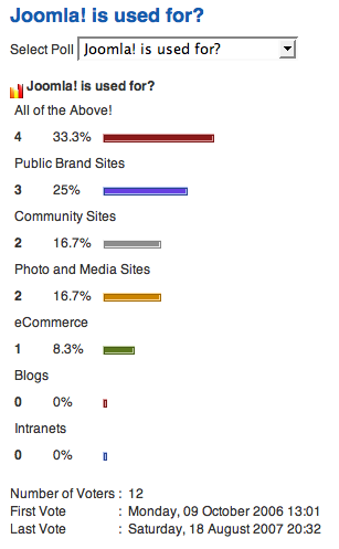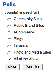 ¿Qué ocurre si decidimos dar nuestro voto? Seleccionamos la respuesta "All of the Above!" (porque ya empezamos a entender las posibilidades que permite Joomla!, ¿no?), pulsamos "Votar",