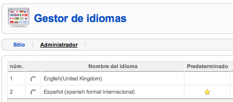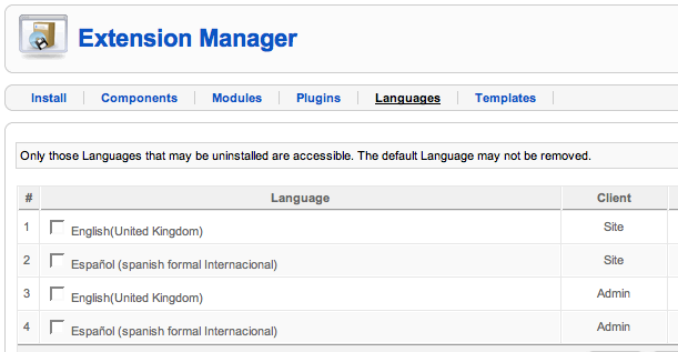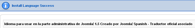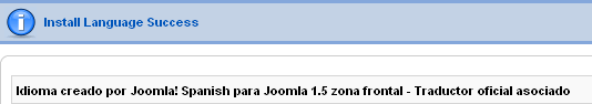 Estamos en condiciones de disponer de nuestro espacio web en el idioma que deseemos, siempre que podamos conseguir los archivos necesarios. En Joomla! los idiomas son extensiones, y se instalan y gestionan desde el menú "Extensions" del menú principal de la Administración de Joomla! Existen traductores oficiales de la distribución original en inglés de Joomla!, que en nuestro caso, si queremos conseguir los archivos que nos permitirán tener Front-end y Back-end en español, es Joomla! Spanish.