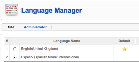 Desde el área de trabajo del gestor de idiomas básicamente decidimos qué idioma es el que se utiliza por defecto, tanto en el Front-end (Site), como en el Back-end (Administrator).