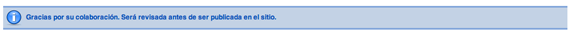 4 Si decidimos "Guardar" el sistema nos envía un mensaje agradeciendo nuestra participación e indicando que el artículo puede ser revisado, y que se debe decidir que sea publicado para que sea accesible en el Front-end.