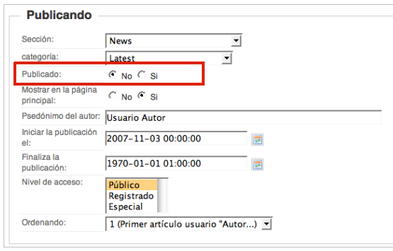 5 Los usuarios de tipo "Editor" podrán ahora acceder al contenido de este artículo creado por un usuario de tipo "Autor" y realizar las correcciones que estime oportunas.