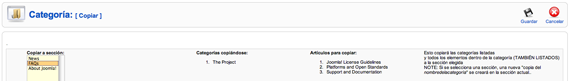 Copiar una categoría supone realizar una copia exacta de ella y de los artículos contenidos en ella. Se mantiene una copia en la sección original.