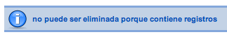 Borrar una categoría supone eliminar cualquier relación de contenidos con esa clasificación, por lo que es necesario que no tenga ningún artículo incluido. En caso de que se quisiera borrar una categoría y no se hubieran eliminado los artículos incluidos, aparecería el correspondiente mensaje de error.