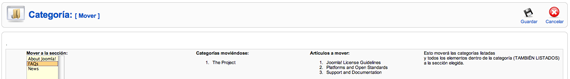 Mover una categoría supone realizar una copia exacta de ella y de los artículos de contenido incluidos, en la sección deseada. Desaparece de la sección original.