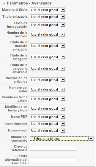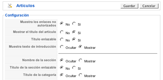 Las preferencias de presentación de los artículos en el Front-end son muy intuitivas, y forman parte de las decisiones que debemos tomar en función del acceso a nuestra información que queramos ofertar.
