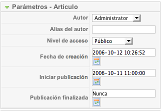Si accedemos a la edición de un artículo de contenido,