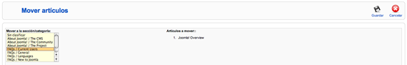 Mover. Para iniciar el proceso de mover el artículo a otra sección y categoría.