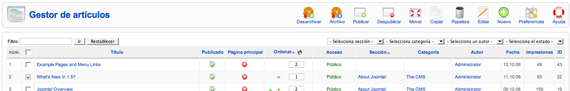 Una vez que accedemos al área de trabajo, observamos la relación de todos los artículos de contenido que existen.