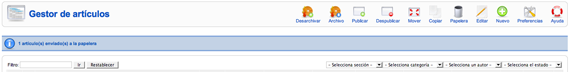 3 Si accedemos a la gestión de la papelera de artículos desde el menú principal,