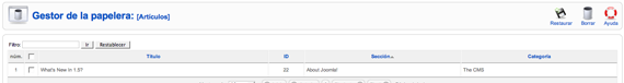 Borrar un articulo de contenido supone enviarlo a la "Papelera de artículos", donde permanecerá hasta que se decida su borrado definitivo o su recuperación a la sección/categoría original.