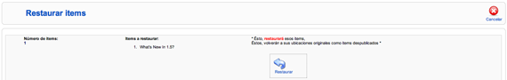 4 Si decidimos "Restaurar", el sistema permite que el artículo de contenido borrado sea recuperado a su localización original, después de confirmar la operación.