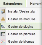 El acceso a la gestión de los plugins se realiza desde el menú principal de la Administración de Joomla!