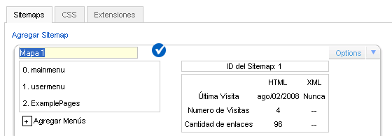 Observamos que el mapa del sitio asociado al ID = 1 mostrará los cuatro menús seleccionados.