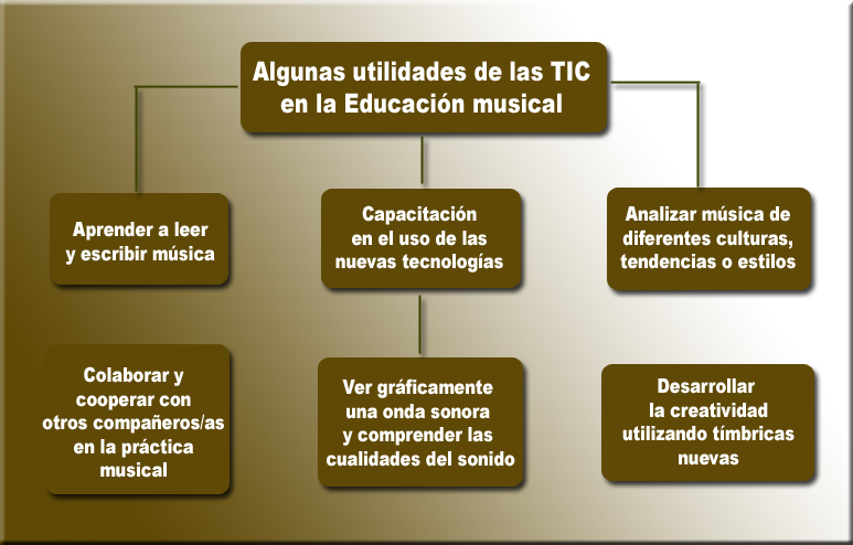 Esquema con algunas de las utilidades de las TIC en la Educación musical