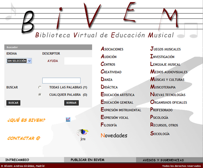 (Pantalla de entrada a la Biblioteca Virtual de Educación musical)