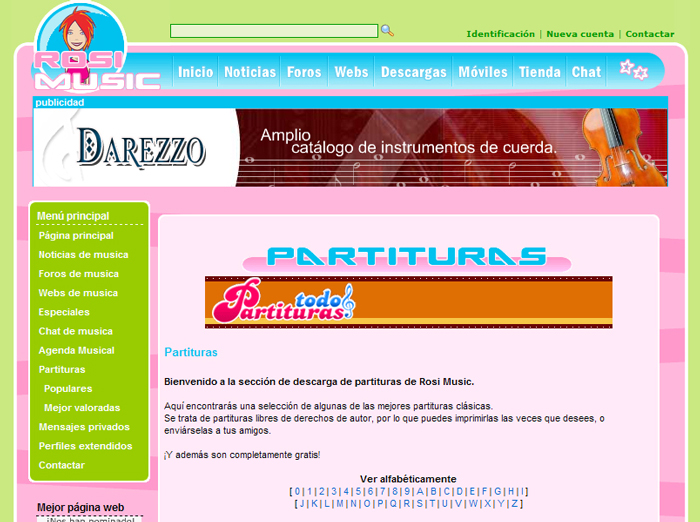 (Pantalla de entrada a la web de colecciones de partituras RosiMusic)