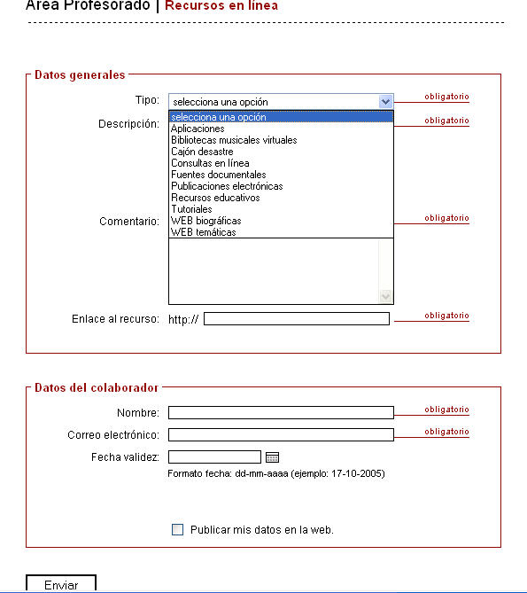 La participación se extiende a todo tipo de usuario. Padres, alumnos, profesores y público en general. Cualquier persona puede aportar ideas acerca de la importancia que tiene la música en el proceso educativo. La siguiente actividad consiste en utilizar la aplicación que existe dentro del área de público para introducir datos relacionados con “Música y educación”. Realiza tu aportación rellenando los cuadros de texto. Después de haber enviado correctamente la aportación búscala dentro del apartado “Música y educación”. Realiza una captura de imagen y guárdala en la carpeta modulo_II con el nombre imagen_musiceduca.jpg