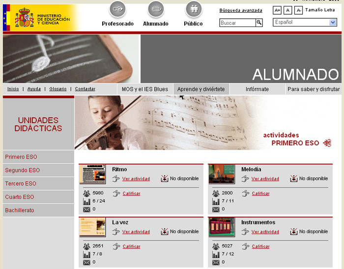 a. Unidades didácticas. Da acceso a las actividades y a sus correspondientes metodologías, organizadas por cursos.