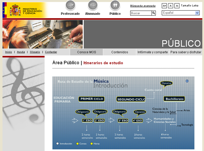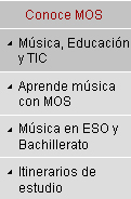 MOS es un recurso de apoyo didáctico musical con forma de viaje que propone un sistema de aprendizaje interactivo multimedia. Su itinerario conduce por las diferentes estancias de la asignatura de Música en la ESO y de la materia optativa de Historia de la Música del Bachillerato de Humanidades y Ciencias Sociales.