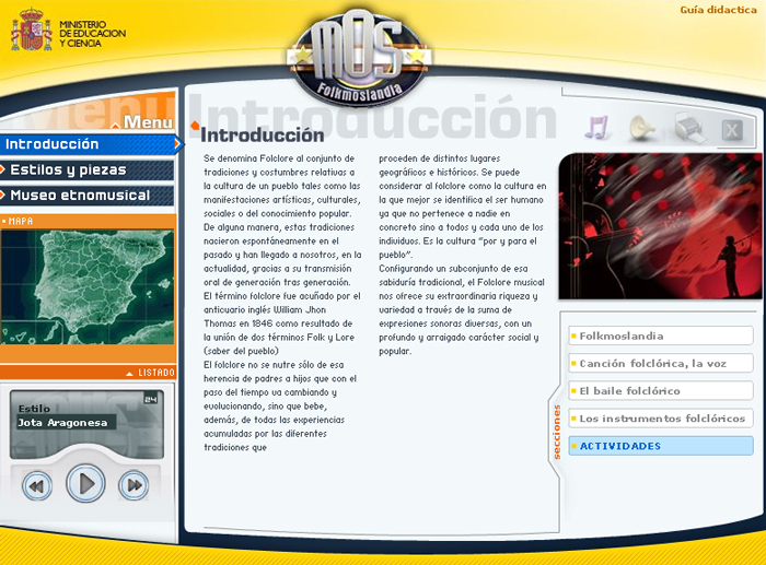 Pantalla de inicio de la secuencia didáctica del Folclore musical en España