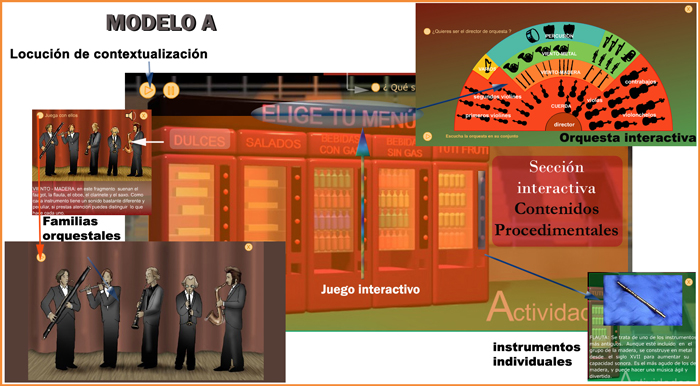 Desglose de las secciones interactivas del modelo A