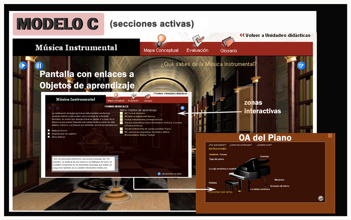 Por sus características, hay OAs que se encuentran vinculados a varias SDs. El acceso a cualquiera de ellos permite profundizar en algún concepto musical determinado del currículo sin tener que realizar todas las actividades que aparecen en una determinada Secuencia.