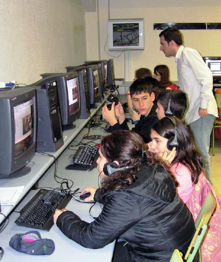Grupo de alumnos y alumnas de 3º de ESO trabajando en el aula de Informática con el recurso MOS