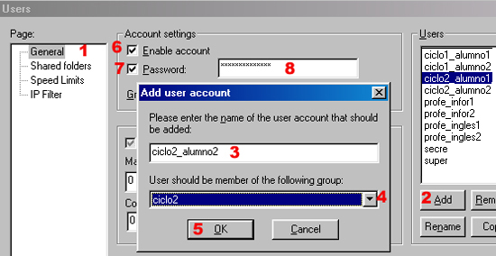 Lo primero de todo, sería crear las cuentas de usuario tal como se describe al margen.