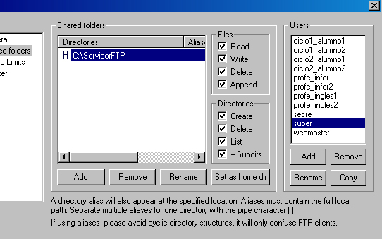Dado que los restantes usuarios -tanto los profesores como los alumnos- van a ser varios, y van a tener acceso a los mismos espacios del servidor, crearemos
