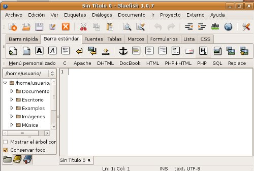 La instalación de este editor no presenta ninguna dificultad. El paquete de instalación de Bluefish se encuentra en los repositorios oficiales de Canonical.Configuración