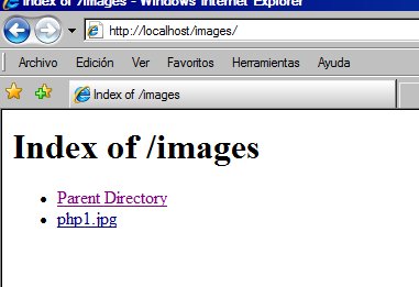 Si no hubiéramos modificado esa directiva nos aparecería una lista con todos los ficheros contenidos en ese subdirectorio, tal como puedes ver en esta imagen.