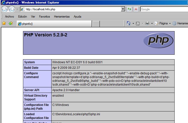 Configuración de PHP 5.2.9
