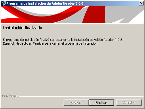 Hacemos clic sobre el botón Finalizar y en el escritorio veremos el icono de acceso directo a Acrobat Reader 7.0. |
