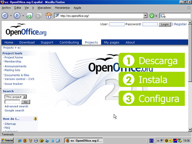 Para comenzar a trabajar lo primero que tenemos que hacer es instalar la suite OpenOffice.org. Podemos hacernos de ella a través de la Web de OpenOffice o utilizando la aplicación que ya está descargada en el CD.