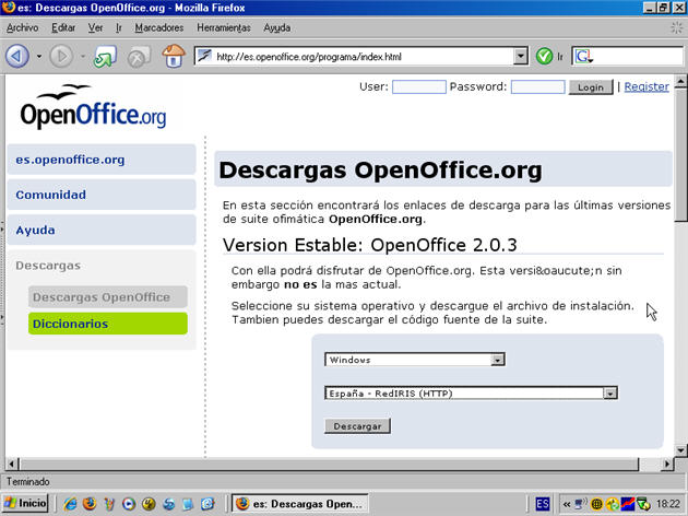 Haciendo clic sobre este enlace se abrirá el navegador de Internet y nos mostrará la página principal de OpenOffice en castellano como podemos ver en la siguiente figura.
