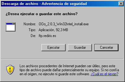 Con este navegador nos aparece el cuadro de diálogo Descarga de archivo, que vemos en la siguiente figura y en el que debemos hacer clic sobre el botón Guardar.