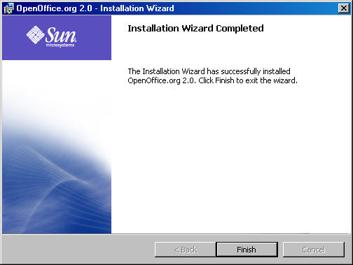 Hacemos clic en el botón Finish para dar por terminada la instalación de OpenOffice.org. Ya podemos borrar la carpeta OpenOffice.org 2.0 Installation Files que nos ha creado en el Escritorio.