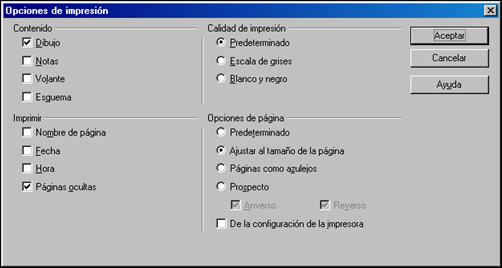 Opciones de página: esta sección ofrece opciones sobre la forma en que se imprimirán las diapositivas: |