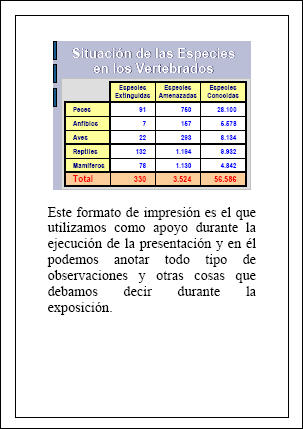 Esquema: con esta opción imprimimos el esquema de la presentación, es decir, el contenido de la misma en formato texto sin objetos ni dibujos. |