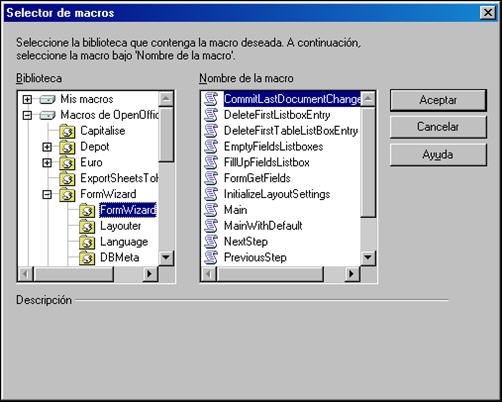 | Figura 15.24. Cuadro de diálogo Selector de macros |