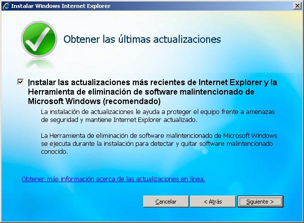En este instante da comienzo la instalación en nuestro equipo "Windows 2003 Server" de la aplicación Internet Explorer 7.