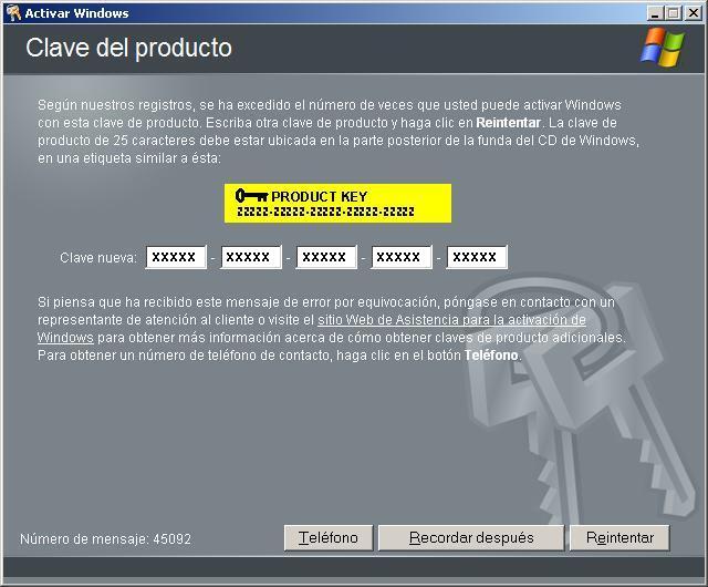 En la siguiente ventana mostrada, deberemos indicar la nueva clave de 25 caracteres necesaria para activar nuestro producto; la teclearemos convenientemente y tras ello pulsaremos sobre el botón "Reintentar".