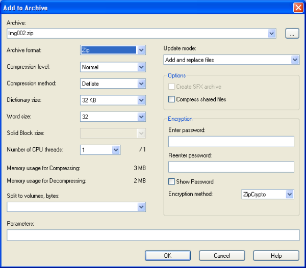 Si deseáramos comprobar el correcto funcionamiento de la aplicación 7-Zip instalada en nuestro equipo, podríamos comprimir un fichero cualquiera, pulsando sobre el mismo con el botón derecho del ratón para elegir a continuación la opción "7-zip ► Add to archive", pasando a ser mostrada la siguiente ventana, en la que elegiremos el formato "Zip" como formato de almacenamiento, tras lo cual pulsaremos en ella sobre el botón "OK", pasando a generarse el correspondiente fichero comprimido en formato "zip".