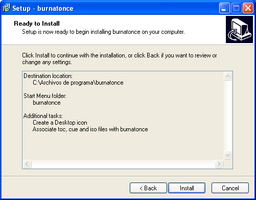 Dará pues comienzo en este instante el proceso de instalación de la aplicación "BurnAtOnce" en nuestro equipo.