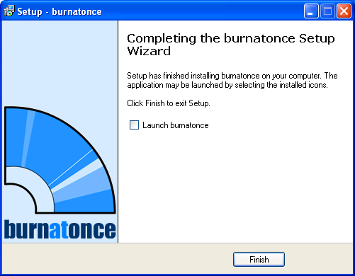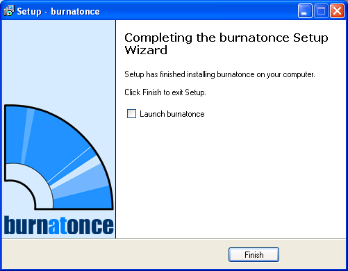 Una vez completada de forma satisfactoria dicha instalación será mostrada la siguiente ventana, en la que desactivaremos la casilla "Lanch burnatonce", y posteriormente pulsaremos sobre el botón "Finish" para dar por completado dicho proceso.