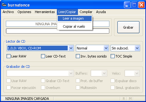 A continuación pulsaremos sobre la opción "Leer/Copiar" del menú principal, para seleccionar posteriormente la subopción "Leer a imagen", tal y como vemos en la siguiente imagen.
